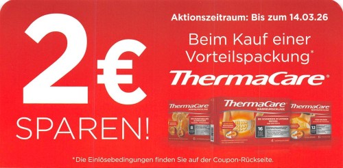 * Beim Kauf einer ThermaCare Großpackung (ab vier Wärmeumschläge) bekommen Sie 2€ Rabatt auf den jeweiligen Verkaufspreis der Apotheke.
